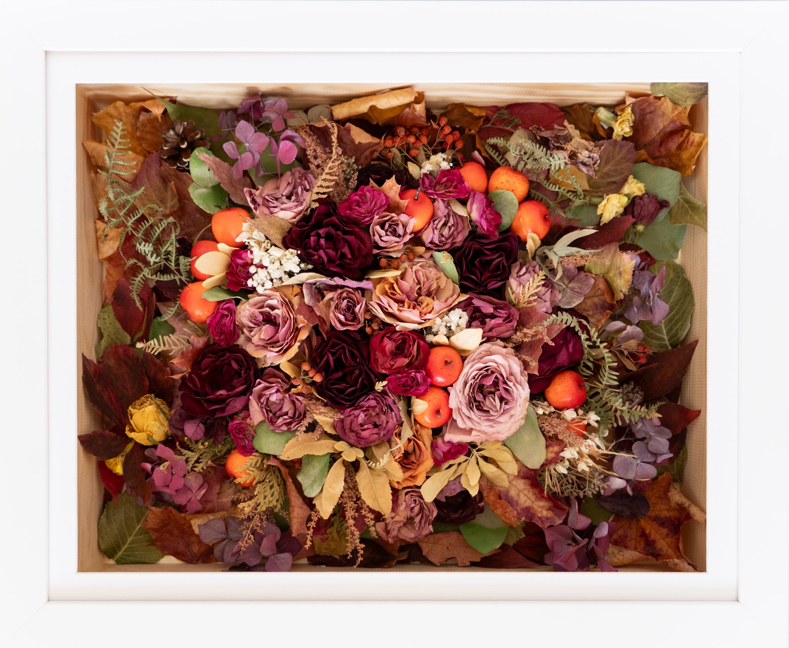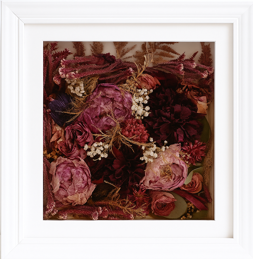 Once we receive and preserve your flowers, we will contact you to discuss your frame options, including colour, size, and shape.