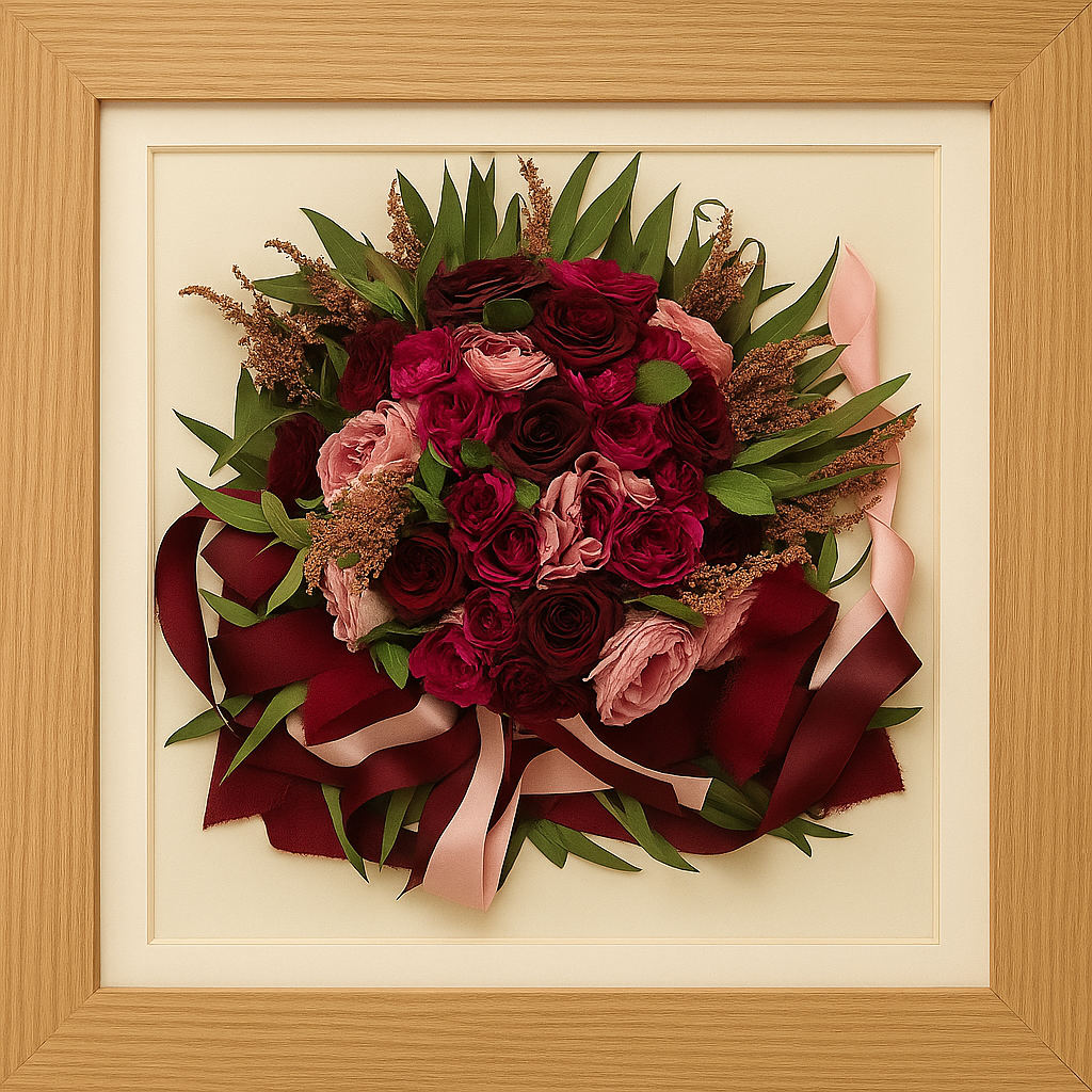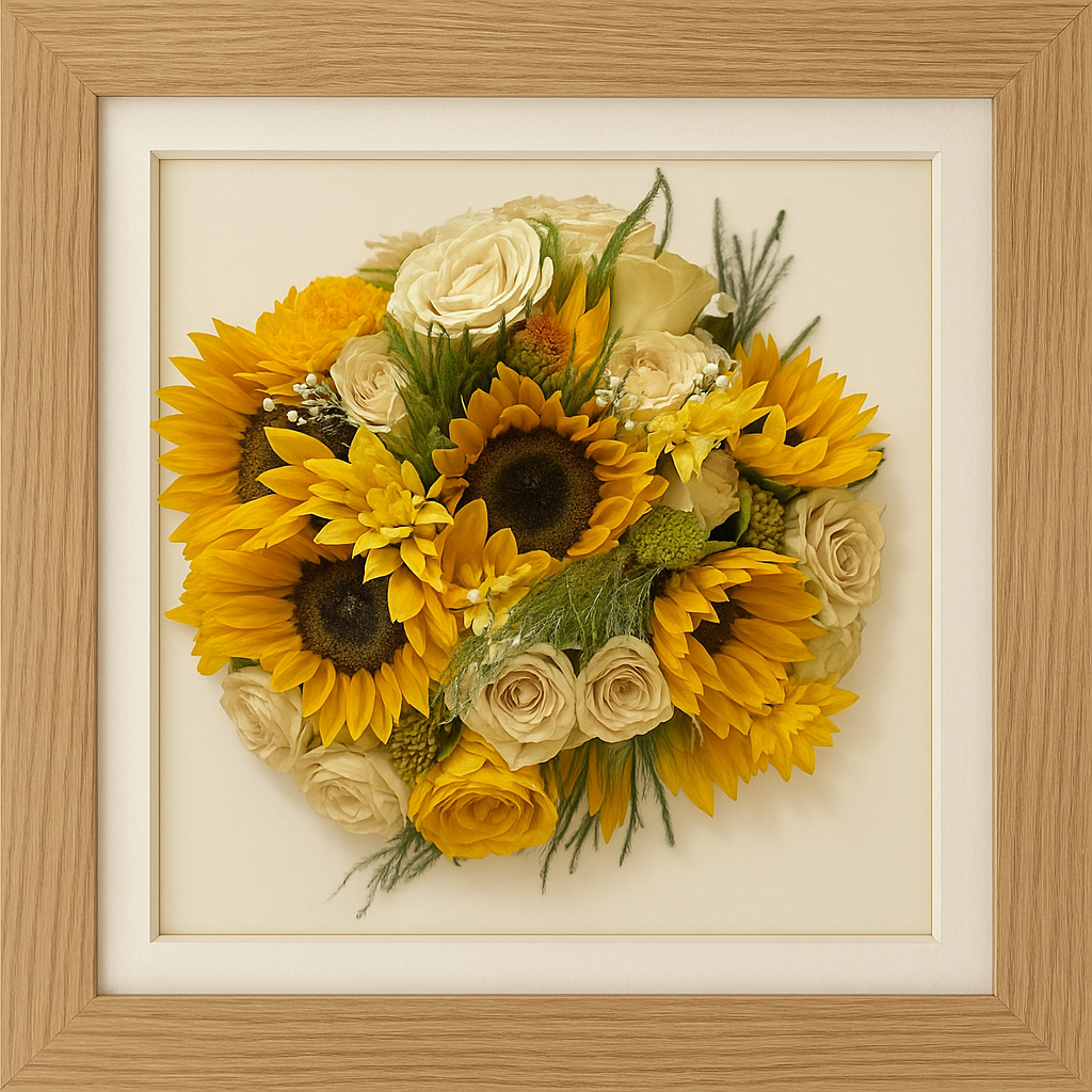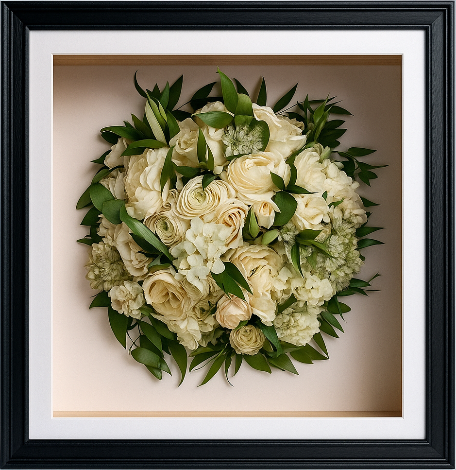 Once we receive and preserve your flowers, we will contact you to discuss your frame options, including colour, size, and shape.