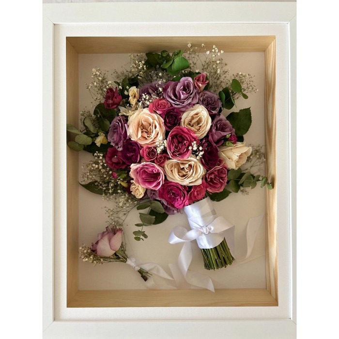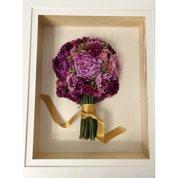 The frame dimensions will depend on the size of your bouquet and the chosen layout.