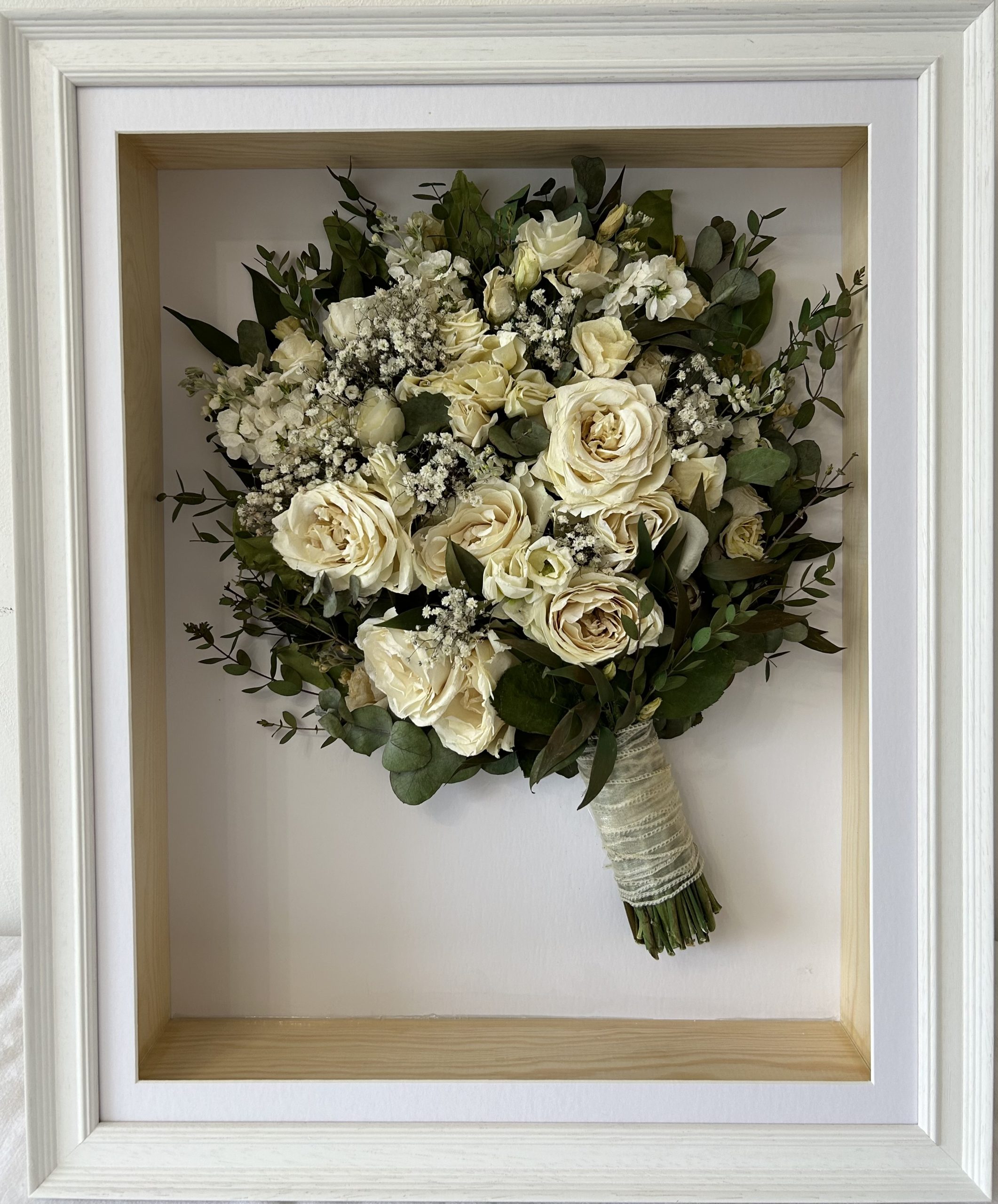 Once we receive and preserve your flowers, we will contact you to discuss your frame options, including colour, size, and shape.