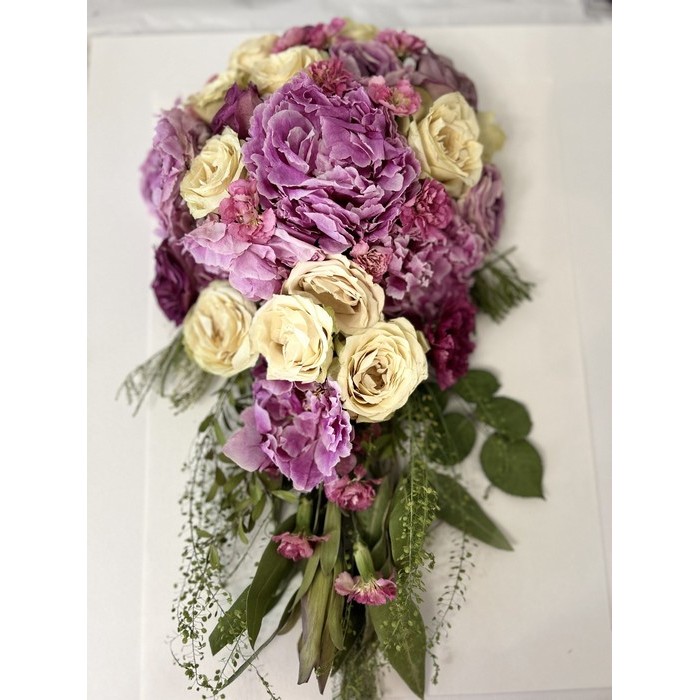 Your teardrop or shower-shaped bouquet will be displayed in a bespoke 3D shadowbox of your choice.
