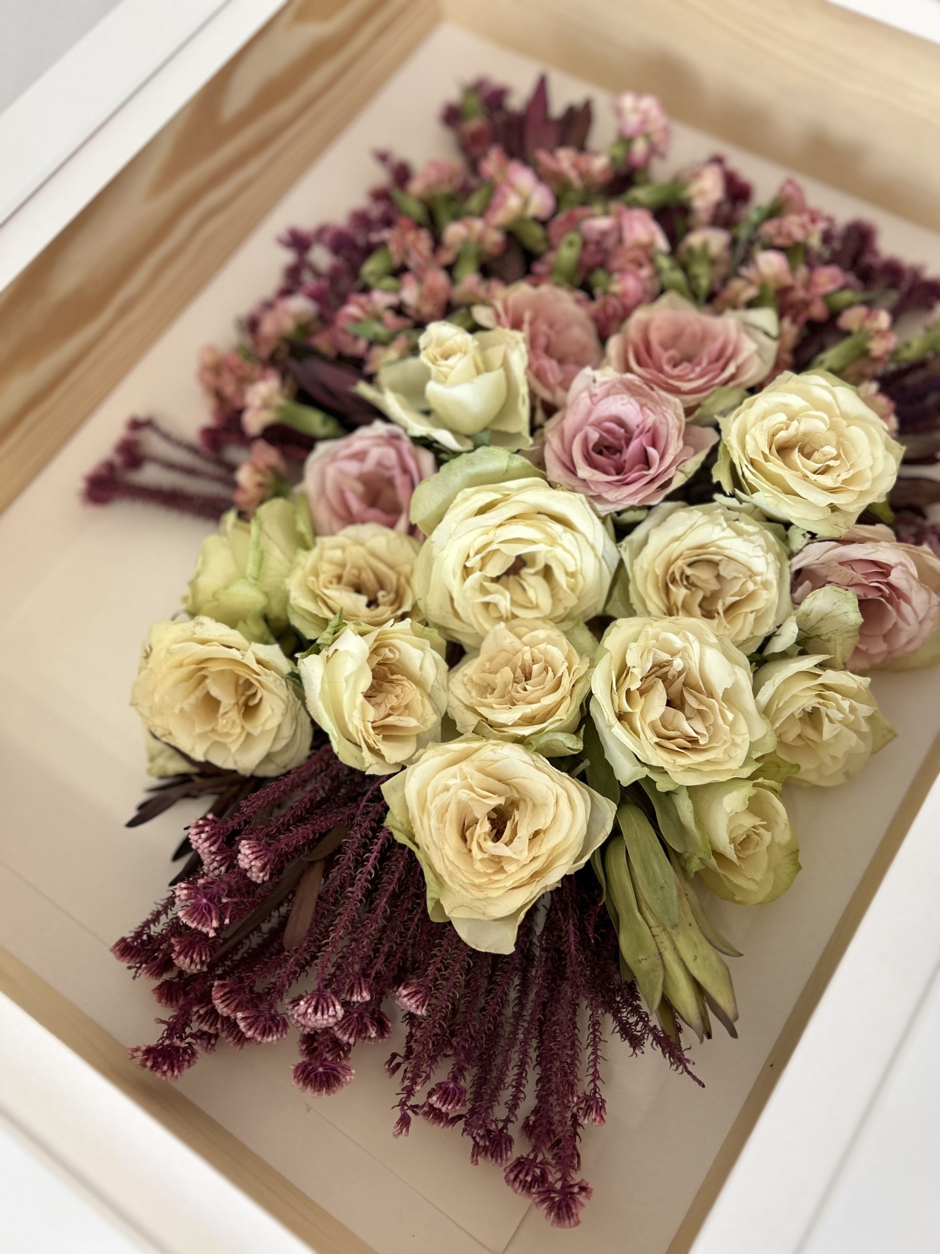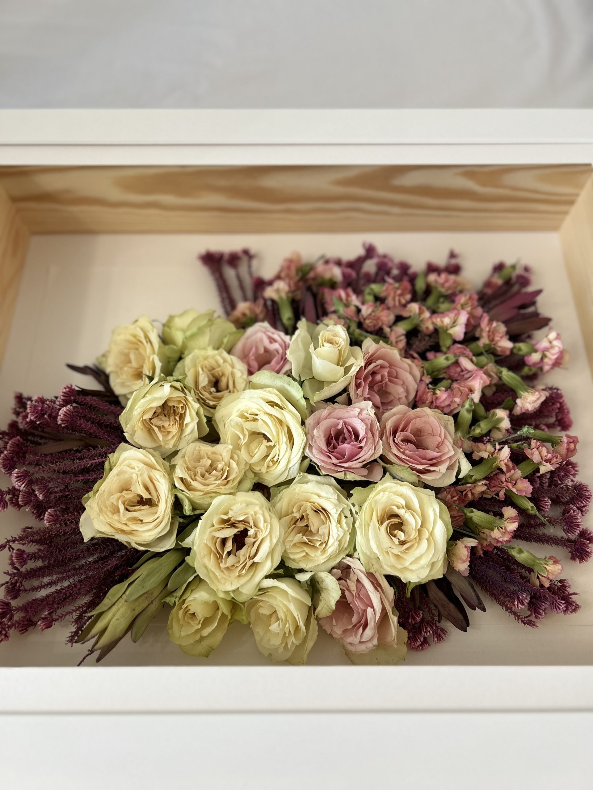 Once we receive and preserve your flowers, we will contact you to discuss your frame options, including colour, size, and shape.